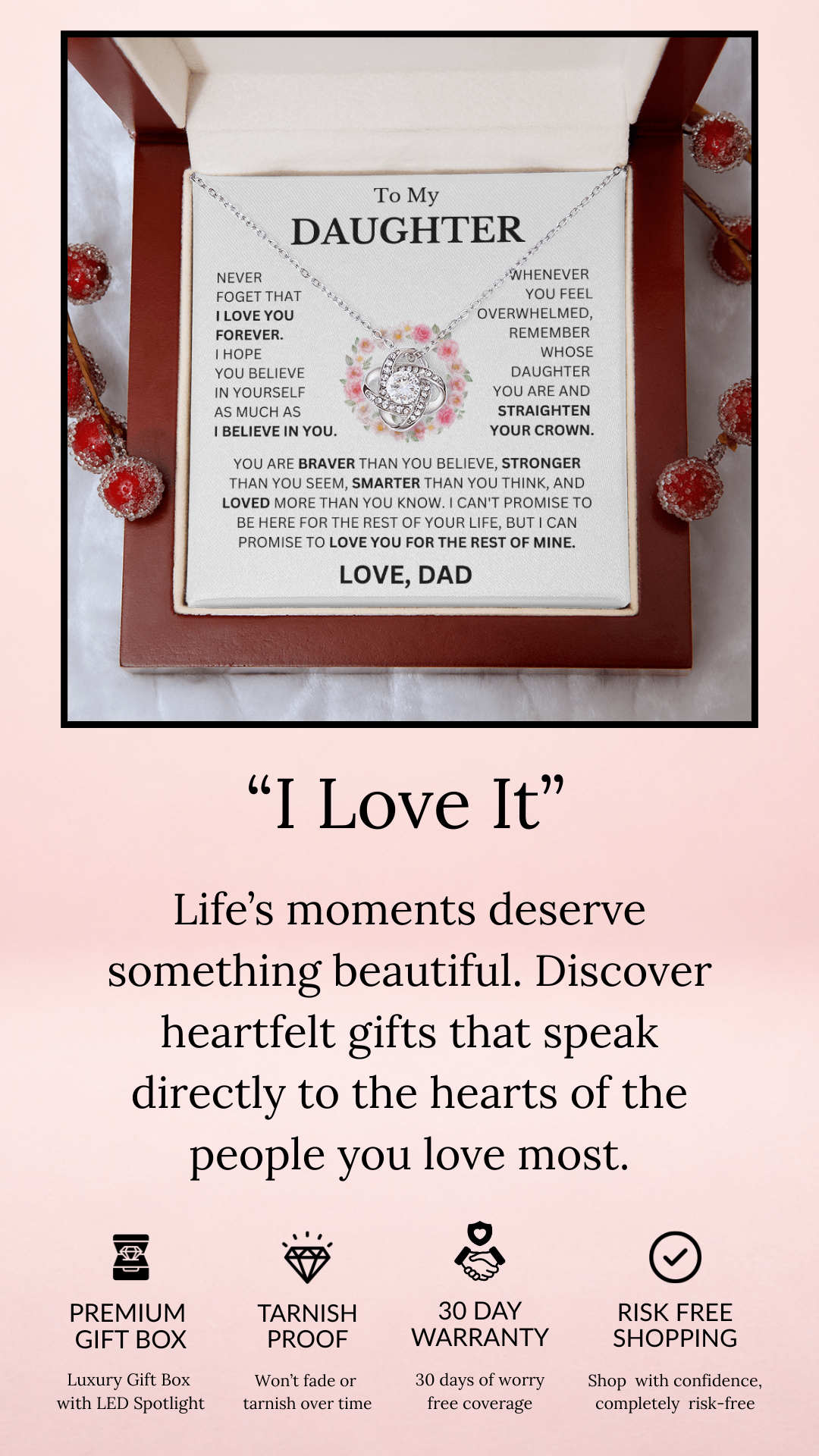 To My Daughter, From Dad (Never Forget That I Love You Forever) Love Knot Necklace